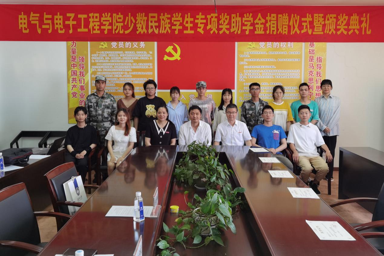 因此,电气与电子学院党委以党史学习教育为契机,将“助力少数民族学子成才,促进民族团结,”作为“学党史,办实事”的一项重要内容来做。经多方努力,在优秀校友张方晓的大力支持下,专门设立了少数民族学生专项奖助学金。专项奖助学金分为专项奖学金、专项助学金及临时补助,专门用以资助少数民族困难学生和奖励少数民族优秀学生,每年发放一次。第一批少数民族学生专项奖助学金发放了17500元,共有12名少数民族学生受益。