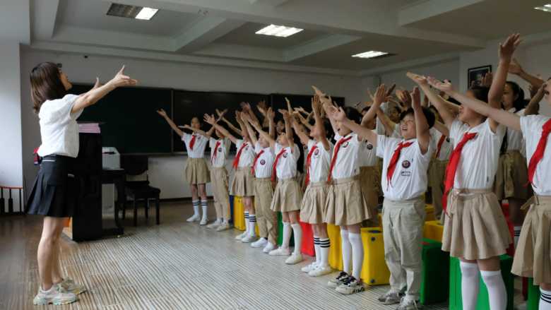 在瓯海区外国语学校北校区,来自音之梦合唱团的39名小学生在老师的指挥下唱起了《让我们荡起双桨》,动人的旋律在孩子们心中播撒下爱党爱国的种子。“今年是中国共产党成立100周年,我们希望能通过孩子们的歌声,表达这份对党的热爱”,声乐老师季仁洁告诉记者,“我们还选唱《红星歌》《共产儿童团歌》等,希望通过这些歌曲让孩子们回顾历史,激发他们热爱祖国之情。”