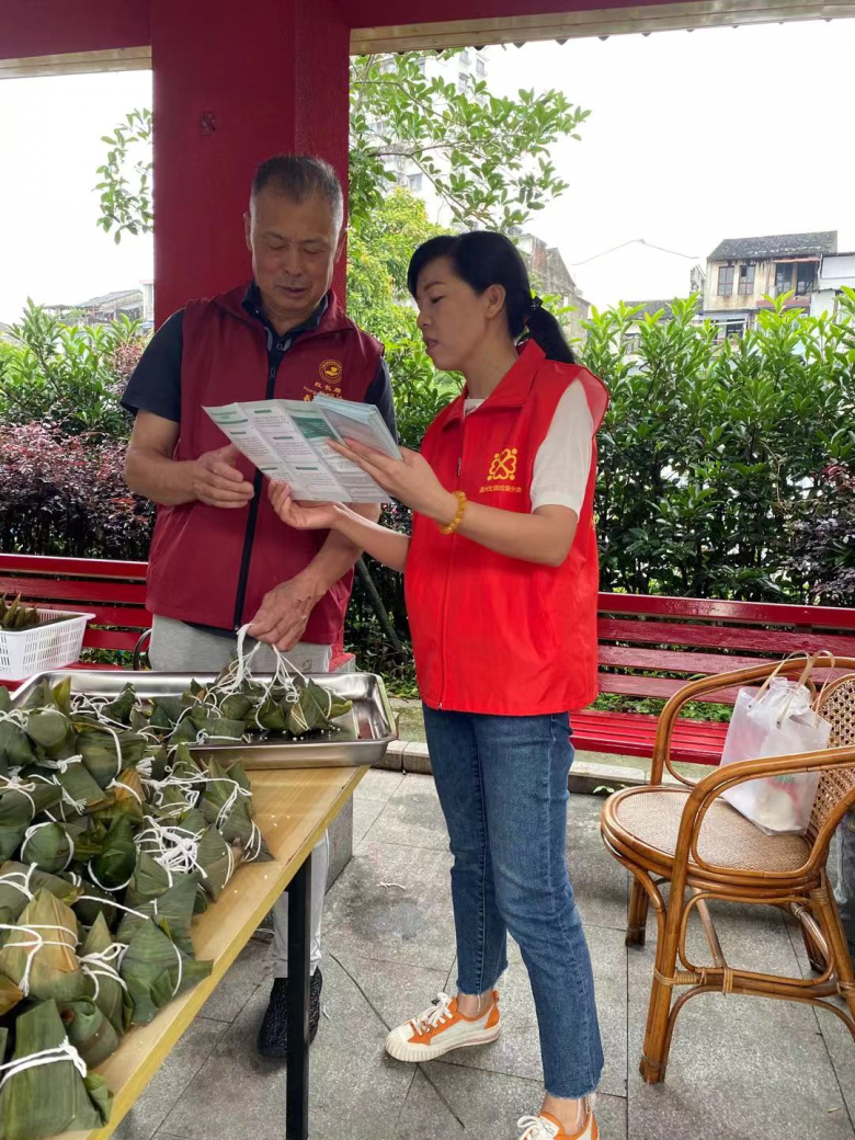 端午节来临,永嘉县公益服务组织“红长廊”在上塘综合农贸市场外组织了“包粽子”活动,借着此次活动,东城街道垃圾分类宣传员向居民发放垃圾分类宣传册并耐心全面分享了当下垃圾分类的意义,号召大家从自身做起,以良好的个人行为带动家庭成员、身边同事和朋友一起加入到垃圾分类行列中。