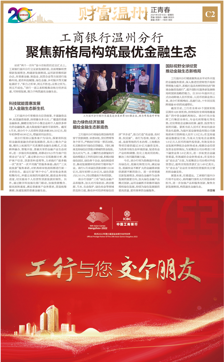 展望未来,任重道远。工商银行温州分行将不忘初心,始终履行国有大行的使命和担当,进一步加强产品和服务创新,聚焦全新发展格局,构筑最优金融生态。