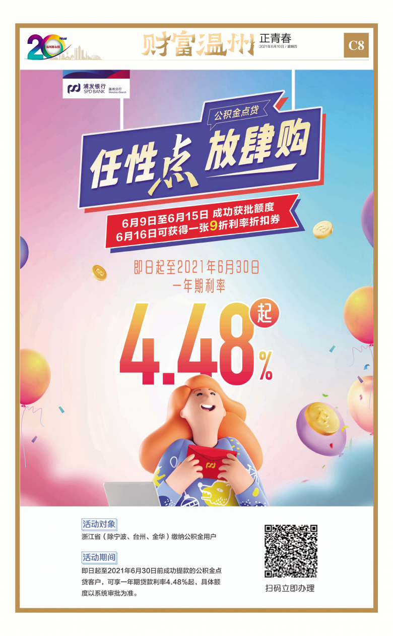 财富温州·正青春 | 浦发银行温州分行:公积金点贷 任性点放肆购