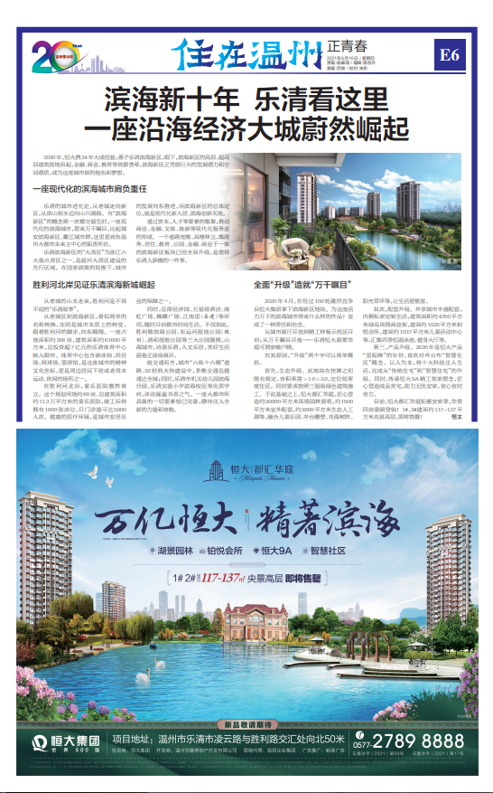 2020年,恒大携24年大成经验,落子乐清滨海新区,眼下,滨海新区的高层、超高层建筑拔地而起,金融、商业、教育等资源荟萃,滨海新区正凭借巨大的发展潜力和空间潜质,成为这座城市新的抱负和梦想。