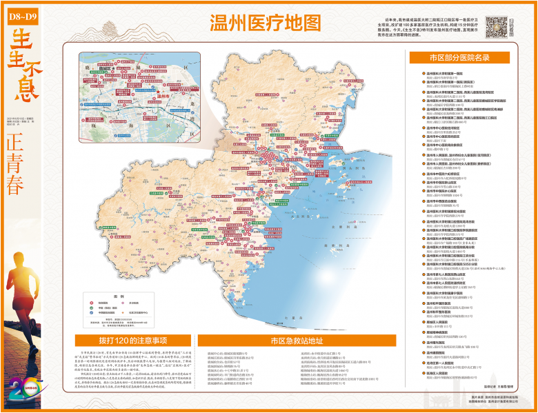 近年来,我市建成温医大附二院瓯江口院区等一批医疗卫生项目,改扩建100多家基层医疗卫生机构,构建15分钟医疗服务圈。今天,《生生不息》特刊发布温州医疗地图,直观展示我市在这方面取得的进展。