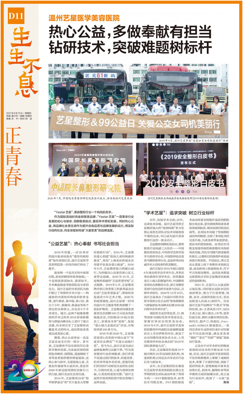 作为国际高端时尚连锁医美品牌,“Yestar艺星”一直秉承行业发展的初心与使命,洞察医美前沿,重视学术领衔发展。同时热心公益,将品牌社会责任感作为提升自身品质与品牌发展的动力,用实际行动向社会、向全球星粉传递“大爱至美”的品牌温度。