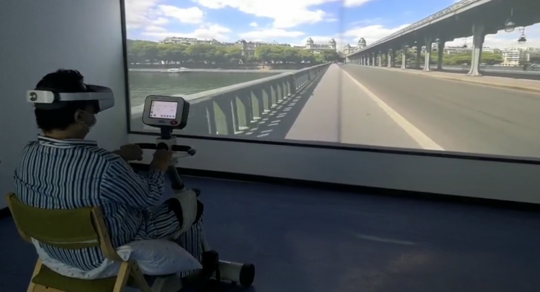 VR/AR康复训练室,记者戴上VR全景头盔眼镜,拿着遥控手柄,在虚拟的场景中体验一番:进入“游戏室”,可以玩水枪、打地鼠等互动游戏;进入“厨房”,可以煎饺子、煮面等日常家务……场景逼真,游戏训练,生动有趣。“这是我们自主开发应用的系统,根据病人的具体情况,还有几十个场景可供选择,比如模拟驾驶(如上图)、户外登山等,让他们沉浸在生活场景中训练,有利于提高康复主动性和治疗效果。”康复病区负责人屠文展介绍,很多中风病人乐于到VR/AR康复训练室。