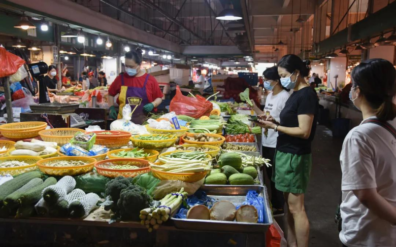 在昆阳镇龙河农贸市场,市民们佩戴着口罩,在工作人员的指挥下,井然有序开展体温检测、健康码扫码等,然后陆续进入市场。市场内,大喇叭循环播放着相关防疫提醒。“整个市场供货渠道比较稳定,物资供应比较充足,同时我们也加大了食品安全检测和溯源力度。”昆阳镇龙河农贸市场负责人林朝阳介绍,这几天,临近端午节,前来采购的市民比较多。为抓好疫情防控,平阳县市监局昆阳分局执法人员每天都在市场内巡逻,严防哄抬物价、哄抢物资。目前,该市场蔬菜、水果、粮油、肉蛋、水产等生活物资供应充足。