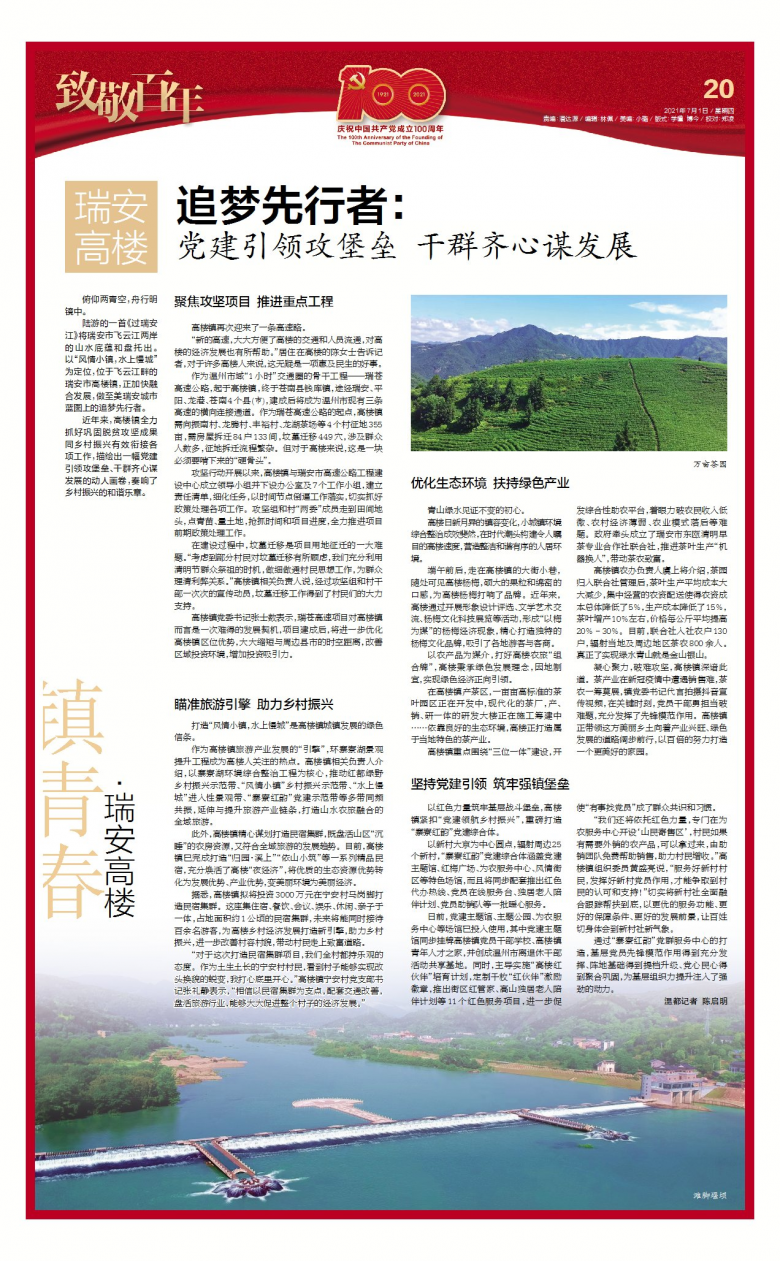 在高楼镇产茶区,一亩亩高标准的茶叶园区正在开发中,现代化的茶厂,产、销、研一体的研发大楼正在施工筹建中……依靠良好的生态环境,高楼正打造属于当地特色的茶产业。