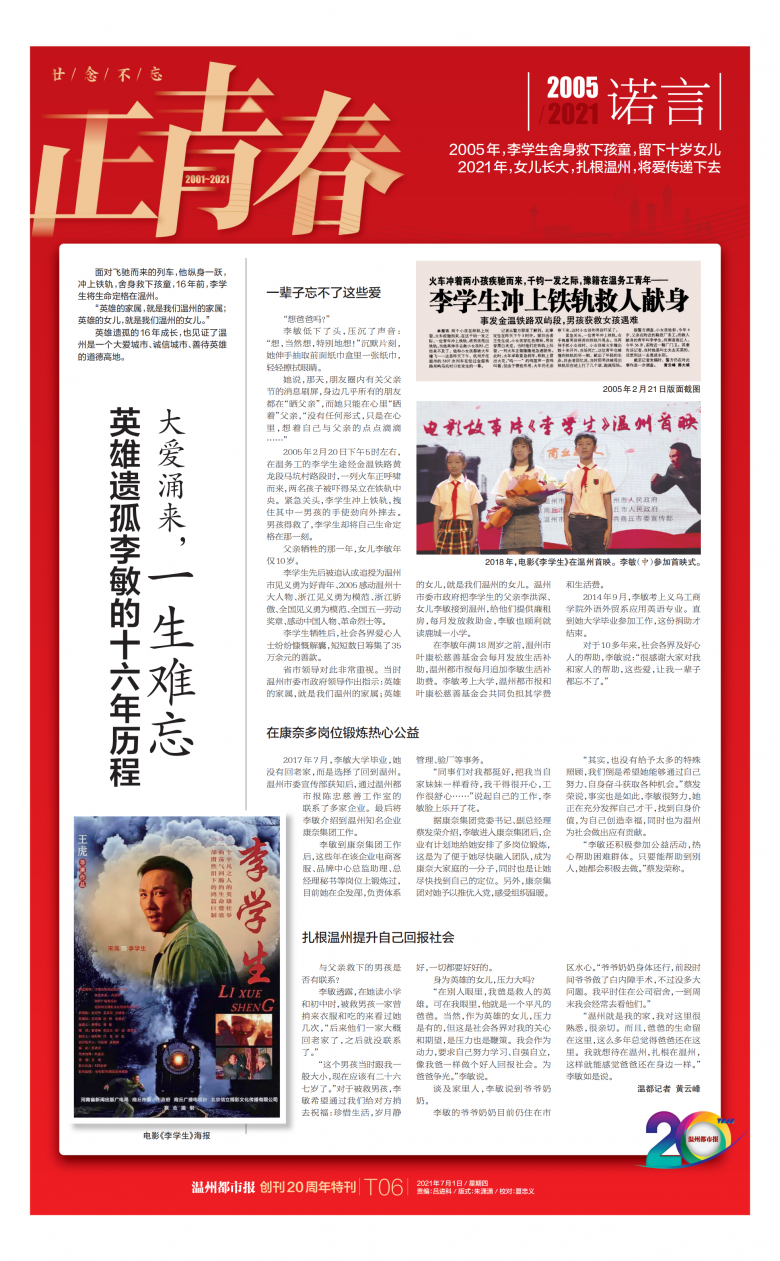 面对飞驰而来的列车,他纵身一跃,冲上铁轨,舍身救下孩童,16年前,李学生将生命定格在温州。