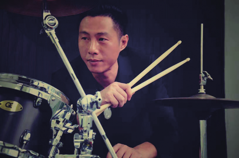 记者认识黄华东之前就听人说,温州有位有根 手指残废的鼓手,跟很多知名乐队同台甚至合作过。 “那时在北京实在混不下去了,听朋友介绍来温 州找机会。”如今有房有车月入上万的黄华东,没有 回避当初来温州时的窘境。 黄华东第一次在温州演出的酒吧是松台广场的 V2酒吧,但半年后,酒吧老板说不需要乐队驻唱了, 黄华东就失业了。之后听说温州永强的乐之海文化 艺术学校要招架子鼓老师,黄华东就去面试了。就 这样,黄华东在这个学校一呆就是一年。 黄华东说这一年其实对他很重要,因为基本吃 住都在学校,每天能花四个小时练习架子鼓,让他的 架子鼓技术更为扎实。 其实,因为基本功不扎实,黄华东是吃过亏的。 他曾经和“重塑雕像的权力”乐队合作过,但因为技 术水平不过硬,他没在乐队继续待下去。不久以后, “重塑雕像的权力”乐队应邀参加包括纽约、芝加哥、 奥斯汀、圣保罗等在内的美国十城巡演,还去了甲壳 虫乐队成员约翰·列侬妻子大野洋子开的酒吧里演 出。说起这事,黄华东至今还觉得非常遗憾。 2012年北京“乐人”音乐学校的老同学问他要不 要来参加“Funk杯全国鼓手”大赛,选手都是来自全 国各地的架子鼓培训老师。接到比赛邀请后,黄华东 身边的朋友都劝他别去,拿到奖没什么好处,没拿到奖 还让人觉得他技术不行,得不偿失。但黄华东却觉得 这是个和同行切磋的好机会,而且自己技术也不差,怕 什么。结果事与愿违,他连续参加两届“Funk杯全国 鼓手”两次铩羽而归,什么名次都没拿到。 “人有时候就要逼自己一把才能有机会出头。” 黄华东说,本着摇滚人的精神,他埋头苦练了一年时 间,终于在第三届“中国鼓手”拿到冠军,并成为某架 子鼓品牌的代言人。