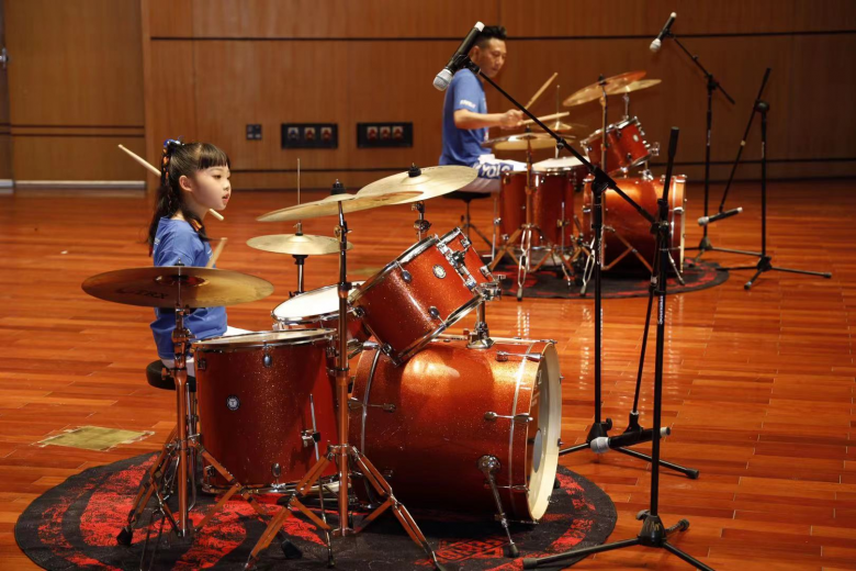 黄华东大概也没想到,他的“乐漂”之 路会在温州终结“。生活不总是热泪盈眶和 激情澎湃,它还有柴米油盐酱醋茶的一 面。”黄华东来温之初,一个月4千元的收 入,与人合租一间房子;现如今他已经是三 家音乐学校的负责人,收入也翻了几倍,还 和朋友开了一家酒吧。 从当初丢下中国石油的铁饭碗出门闯 荡,到如今家庭事业双丰收,黄华东成为老 家发小们的人生偶像。当年一位阻止他出 门闯荡的老家乐队成员,对于黄华东现今 的生活羡慕不已,他说时间证明黄华东是 对的,他当初就没狠下这个决心出去闯 闯。另一位中国石化同事也曾是乐队成员 吉他手,前年来温跟着黄华东一起做培 训。但因为家里有孩子要照顾,他在温州 待了半年又回去了。 黄华东说并不是他比小伙伴优秀,而 是他恰巧抓住机会,再加上坚持与努力。 作为曾经热爱摇滚乐的黄华东,已经从 参与者变成了观众,每年温州举办音乐节, 他都会去现场观看。他说音乐节上很多乐 队在台上唱着他人的成名曲,这个在当年音 乐圈里是会被耻笑的。 对于今后的打算,黄华东说他教过的 几个学生考上了像南京艺术学校这样不错 的学校,他今后将会把心思放在架子鼓教 学上,想要培养出更多的优秀学员,然后找 机会再去和外面的架子鼓老师切磋技艺。 而最令他欣喜的是女儿晓爱在四岁时 不知为什么也喜欢上了架子鼓,女儿学校 每个孩子甚至门口保安都知道他是那个会 敲架子鼓的黄晓爱的爸爸“。她能坚持喜欢 架子鼓那是极好的,如中途放弃我也能接 受。”黄华东说。 每天傍晚时分,南塘河畔,卸下老师与 父亲的身份后,黄华东会去自己开的酒吧, 享受舞台表演。拿起鼓棒,他还是那个最 酷的鼓手。