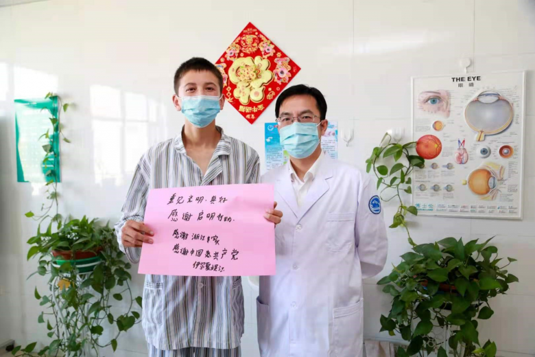 据悉,两位重见光明的维吾尔族儿童的角膜都是由温州医科大学眼库向南疆眼库捐赠的。此外,陈蔚教授还代表医院向南疆眼库捐赠了100万元的眼库材料。