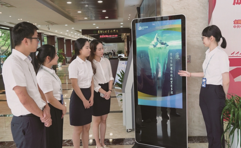 公司顺应“互联网+党建”潮流,打造完成300余平方米的智慧党建专区,通过科技赋能,将清廉文化融入智慧党建,启动清廉“全智”时代,完成了集资讯、教育、工作、管理、服务为一体的共建共享智慧平台。同步建设数字信息化廉洁走廊,完善员工廉洁书吧,购置大量清廉书籍,让员工在清廉的氛围中感受“正气”。