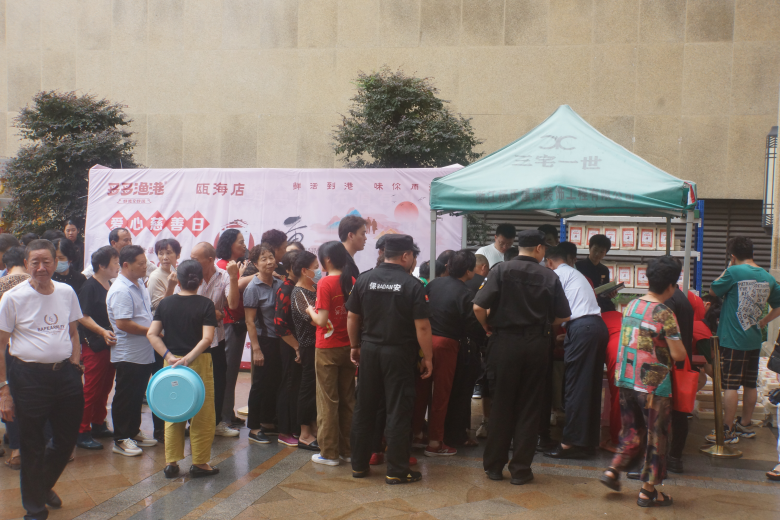 10月14日重阳节中午,瓯海诚泰锦园门口,云天楼旗下的全新海鲜餐饮连锁品牌多多渔港为迎接第四家门店——瓯海店即将开业大喜,推出节日送福米公益活动,为每位社区老人送去特别的节日祝福。