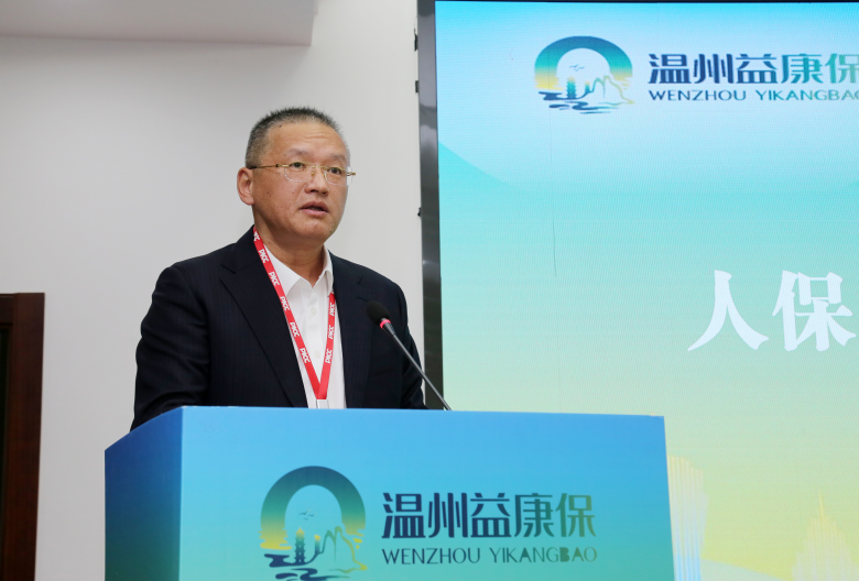 图为益康保共保体、中国人保财险温州市分公司党委书记、总经理何彬致辞
