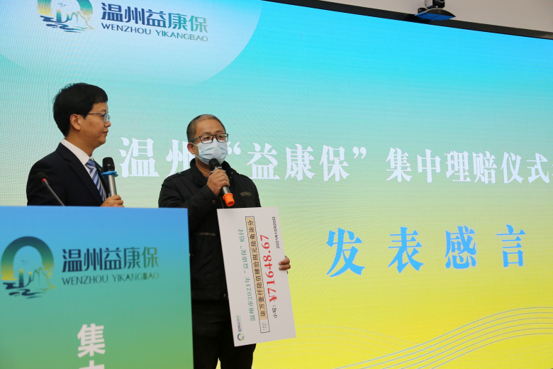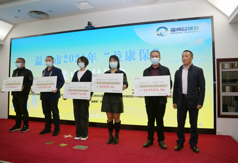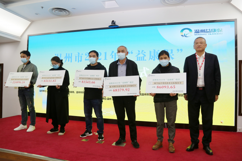 10月20日下午,2021年温州“益康保”首场集中赔付仪式在中国人保财险温州市分公司举行。18位参保人代表在现场集中领取理赔金,金额总计211万元。市医保局、市财政局、市农业农村局、市金融办、市税务局、银保监温州分局等六部门到场参会。