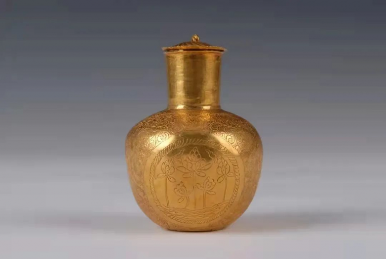 北宋錾刻开光莲花纹带盖金瓶