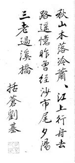 刘基以诗文见长,与宋濂、高启并称“明初诗文三大家”,著作均收入《诚意伯文集》。他在其散文名篇《卖柑者言》中,用“金玉其外,败絮其中”准确地概括元末社会腐朽之实质。
