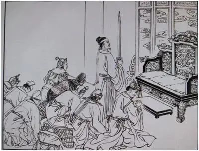 二王和臣子跪拜在宋高宗遗留的龙椅前 余承信 绘