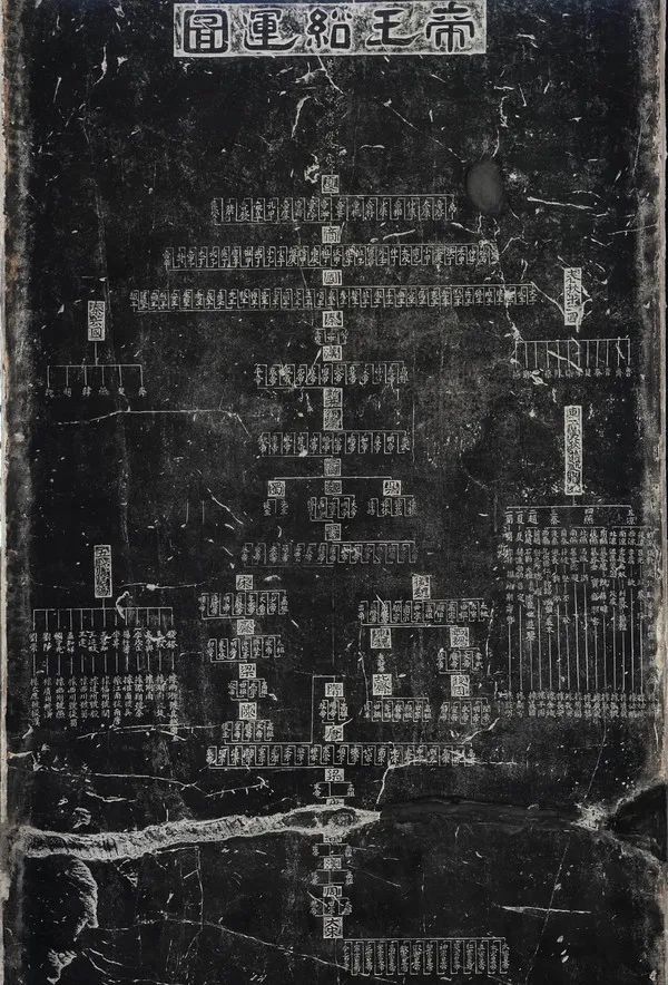 《帝王绍运图》碑是我国现存唯一的石刻帝王世系表图,“自五帝以降,迄于国朝,凡一百九十五君,历三千五百余年”。图中的宋宁宗和“今上皇帝”(宋理宗)是王致远刻碑时添加的,并非出自黄裳原图。