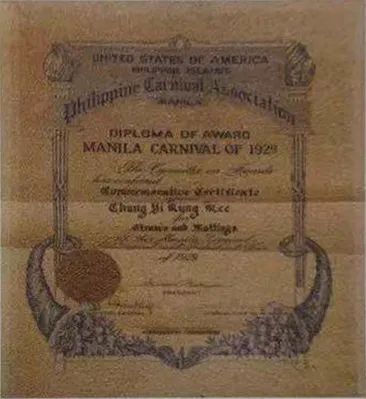 1929年菲律宾马尼拉工商博览会颁发的奖状