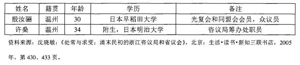 1912年浙江省临时议会温州籍议员表