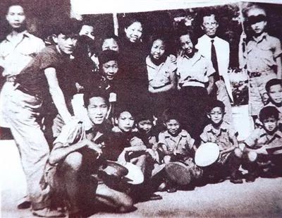 1938年9月,邓颖超(后排右五)看望“厦儿团”,后排右二为林环岛。
