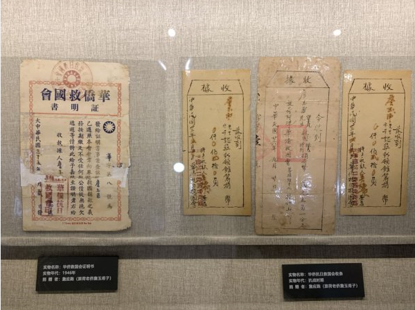 与收据同时发现的,还有一张1946年荷属西印度群岛古拉梳埠华侨抗日救国会颁发的证明书,表明詹玉甫是当地华侨抗日救国会会员,“已遵照本会会章,向来履行救国捐款之义务,按期缴足”“从无拖欠逃避等情”而被嘉奖。