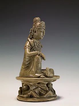 此件为白象塔中出土的唯一一件青瓷水月观音坐像,是早期水月观音图像的典型代表,也是北宋现存为数不多的陶瓷观音造像。