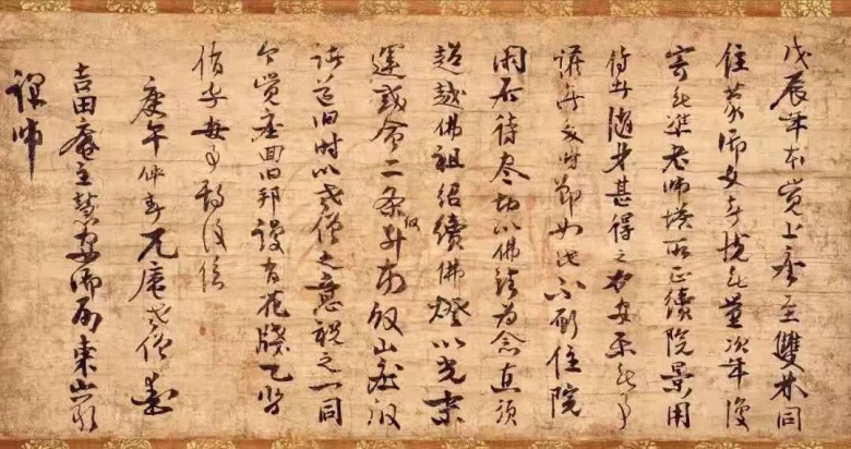 古林清茂(1262-1329),乐清人,俗姓林,出家后法名清茂。两次奉圣旨开堂,赐号“扶宗普觉佛性禅师”。日本禅僧入元求法,“多以能入其门为荣”,师从古林的日本弟子有记载的达32名。他的著作在国外深受欢迎,日本有求师语录,刊刻传播,高丽则将其《偈颂》刻板印行。《与无梦一清偈》《与月林道号》《送别偈》等多幅遗墨今藏于日本。