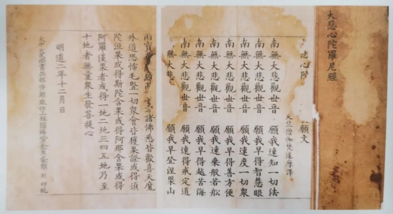 1966年,温州慧光塔出土北宋刻本《大悲心陀罗尼经》,纵32.5厘米,横160厘米。前段为大悲心发愿文,后段为84句大悲咒。用纸光洁如新,即为蠲纸。