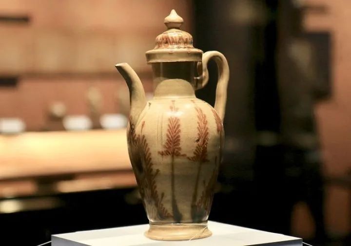 北宋瓯窑青釉褐彩蕨草纹执壶