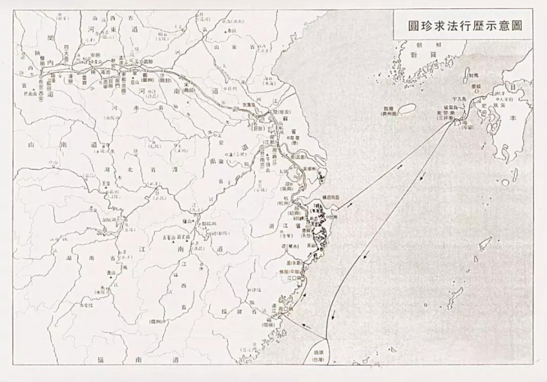 据考证,带圆珍一行入唐的商客钦良晖和王超正是新罗人,船长钦良晖不仅帮助圆珍入唐,还曾为“入唐八家”中另一位求法僧圆仁递送友人的跨洋书信。