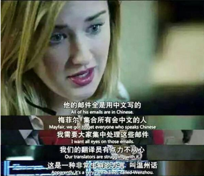 美剧《盲点》更把温州话描述为难倒FBI特工的神秘代码。