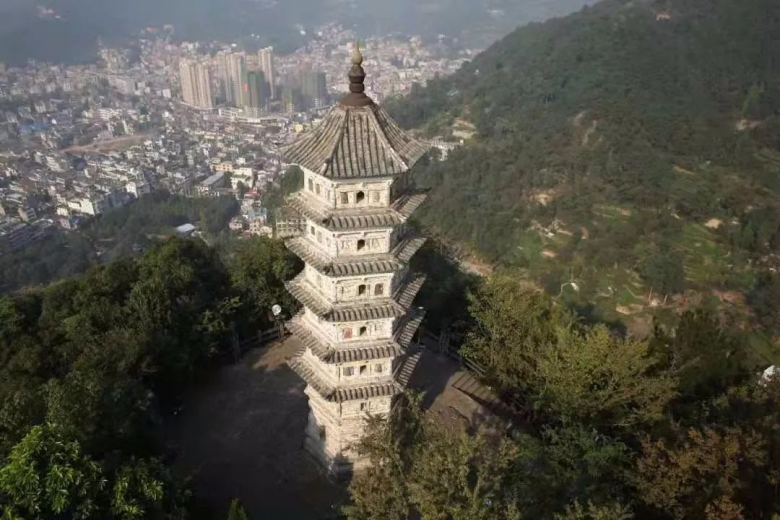 据明永乐《乐清县志》记载,北宋熙宁年间(1068-1077),因附近九牛山上一石塔被雷震圮,改迁于文峰。文峰山耸拔如笔,坐落乐清县城东首,俗称东皋山。