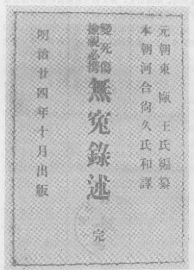 《无冤录》的日本版还有《变死伤检视必携无冤录述》,刊于明治二十四年(1891年),由东京矶村允贞出版,警察监狱学会藏版。
