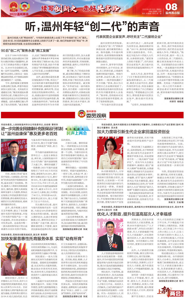 今年温州两会上,出现了很多新面孔。这些新代表、新委员展现出饱满热情和履职担当,他们结合各自工作和调研实际,带来了两会“新”声。