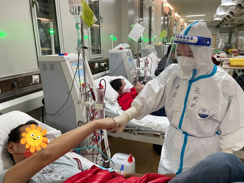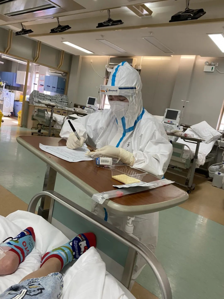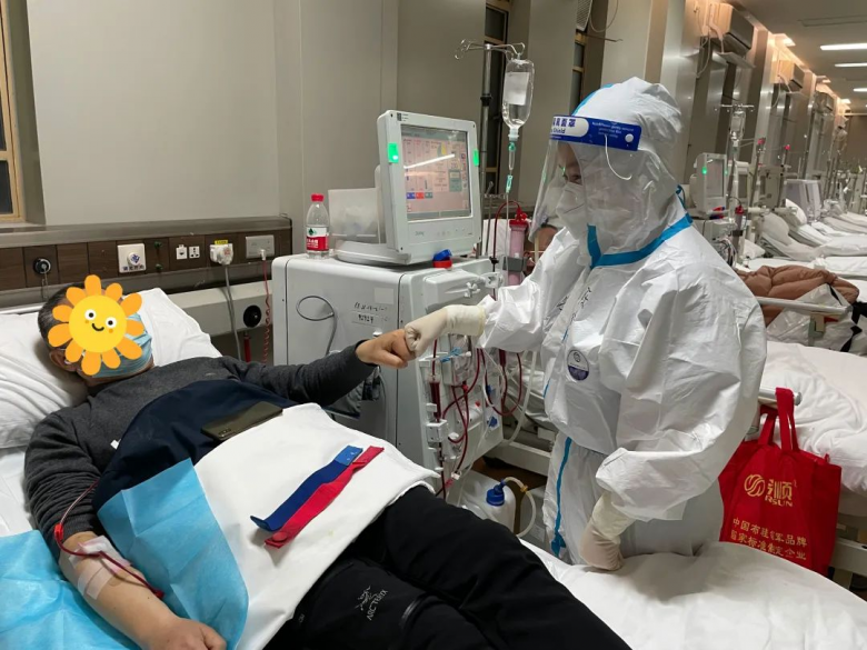 4月1日傍晚,温州市中心医院一病区的陈玲玲、五十病区的王丽丹2名护士连夜赶赴杭州,经严格考核后于次日进沪,参与浙江省援沪血透队,支援上海3家医院的血透室。在上海中山医院血透室,血透队被分成早晚两个班次。她们迅速熟悉机器操作流程,便马不停蹄忙碌至凌晨24时,连续十多个小时不吃不喝,以确保高质量完成任务。