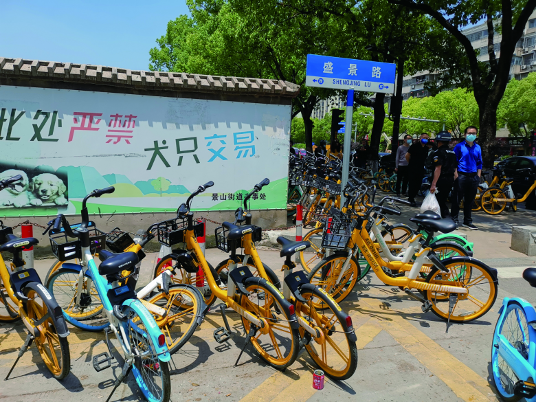 随后,督查组一行来到方正组团。在该小区附近的盛景路入口处,路面存在破损,大量共享单车无序停放,使原本狭窄的道路显得更加拥挤。沿着盛景路一路观察,在这条长约100米的道路上,商户占道经营现象严重,其中一家商户在门前摆放的盆栽几乎占据了整个人行道。一些驾车前来购置花鸟的市民为图方便,索性将机动车停放在商铺门口,造成交通拥堵,影响市民通行。在景轩路两侧,同样存在商户占道经营的乱象。