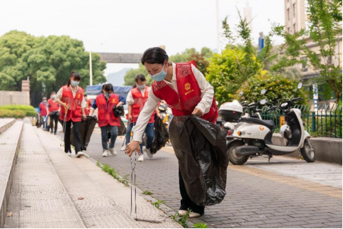 温州职工志愿者在开展环境卫生大扫除活动。温州市总工会供图