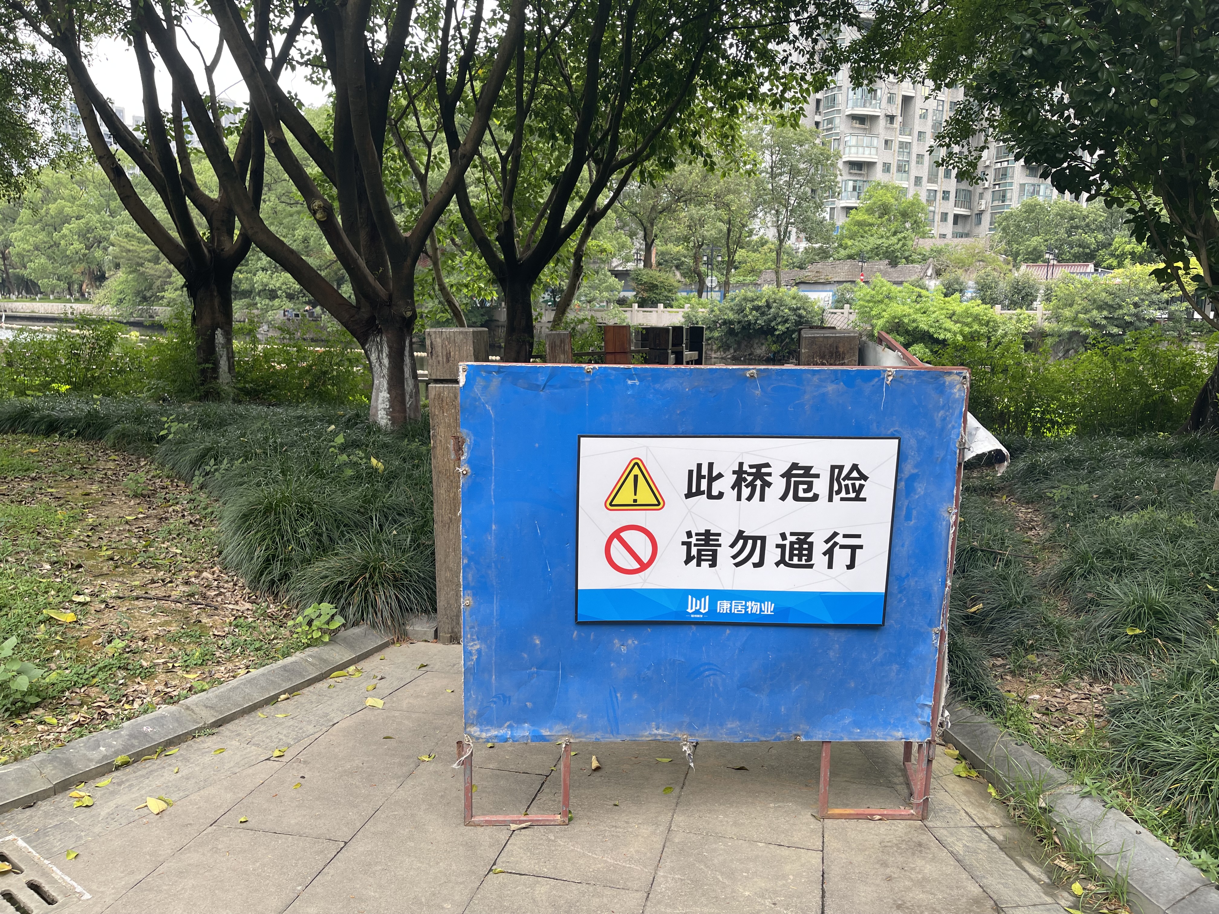 无法通行的九山河西侧沿河步道