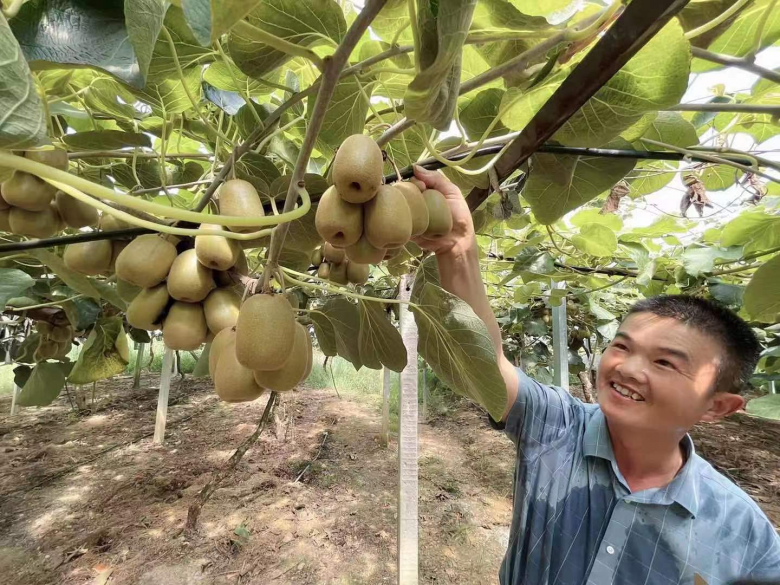 蓝天白云,一个个避雨棚下,一串串猕猴桃簇拥一起,果实饱满,清香四溢,令人垂涎欲滴。“这里有38亩猕猴桃,大多属红阳新品种,快要成熟了。”蓝学中说,他种植猕猴桃已十几年了,起初由于品种和技术不过关,亏了不少钱。近年来,通过泰顺猕猴桃院士工作站牵线搭桥,在有关专家指导下,他投入68万元,让果园用上了避雨大棚和滴灌系统,并合理施用有机肥,从此,猕猴桃生长情况大为改观,其产量和品质随之提升,“沃果”猕猴桃品牌越发响亮。“去年我猕猴桃收入30多万元,估计今年有50多万元。”