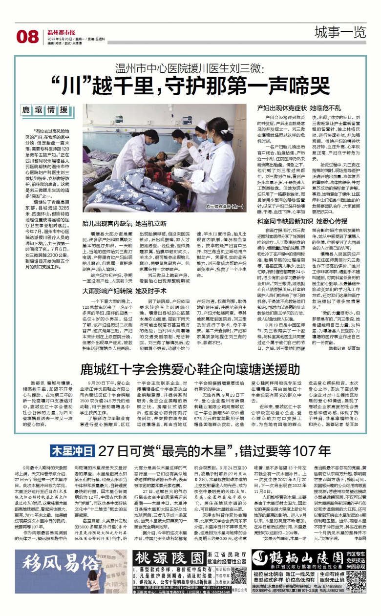 “有位去过高风险地区的产妇,在牧场的家中分娩,但是胎盘一直未落,需要专科医师跟120急救车去接产妇。”正在四川省阿坝州壤塘县人民医院帮扶的温州市中心医院妇产科医生刘三微接到指令,立刻做好防护,前往救治患者。这就是刘三微援川生活的诸多“突发”之一。