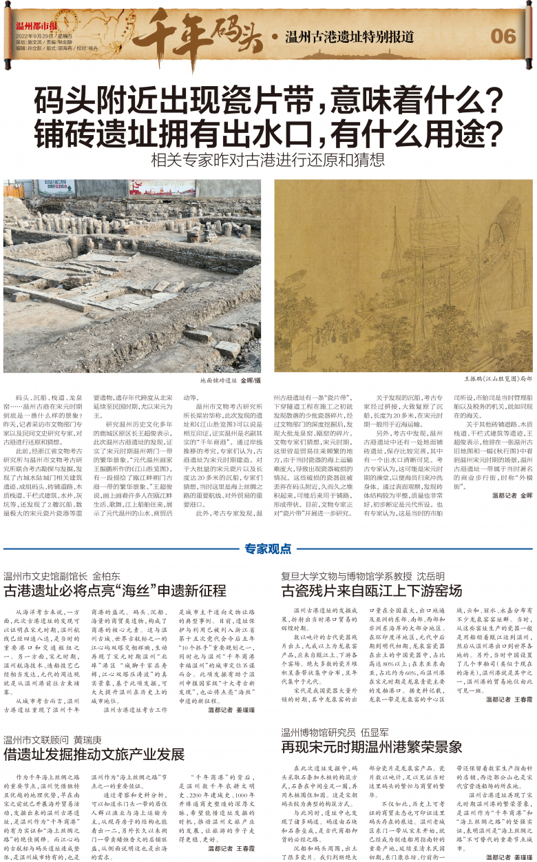 码头、沉船、栈道、龙泉窑……温州古港在宋元时期到底是一番什么样的景象?昨天,记者采访市文物部门专家以及民间文史研究专家,对古港进行还原和猜想。