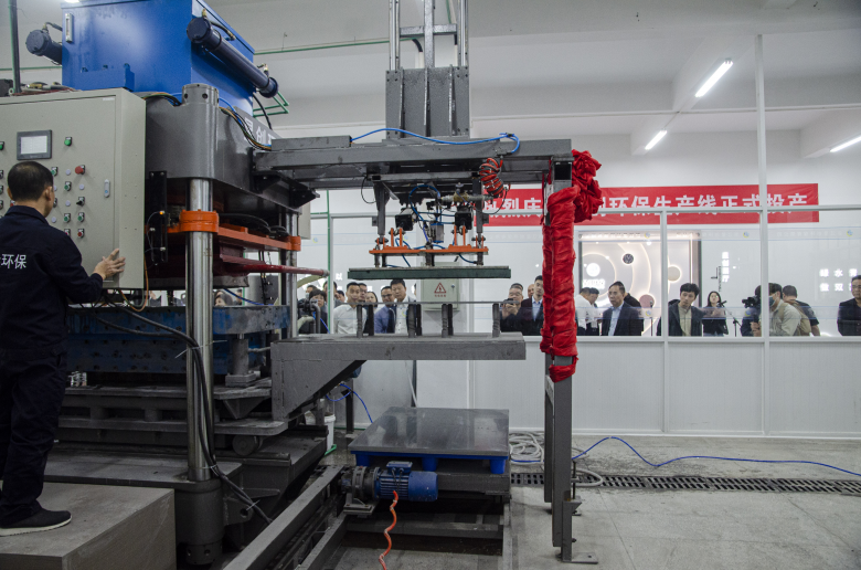10月26日上午9时16分,温州海螺集团旗下企业浙江星创环保有限公司无机生态水磨石生产线正式投产。伴随着海螺集团董事长邵奇星一声令下,现场顿时响起机器的轰鸣声,一堆堆稀松的淤泥在经过泥料预处理、骨料配料、助剂配料、均匀搅拌、均化布料、真空压制、磨抛加工等工序后,竟“神奇”地固结成硬邦邦的石头,成为了一块块无机生态水磨石,展现在大家面前。