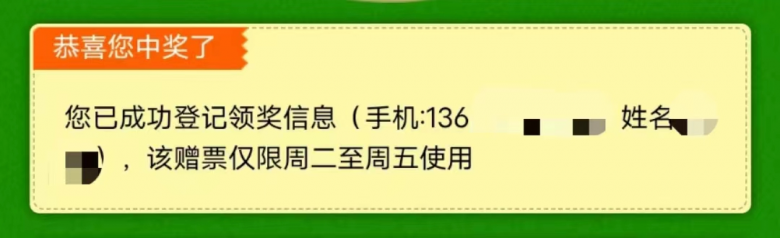 3、抽中门票后,请务必填写个人信息,包括姓名和联系方式等