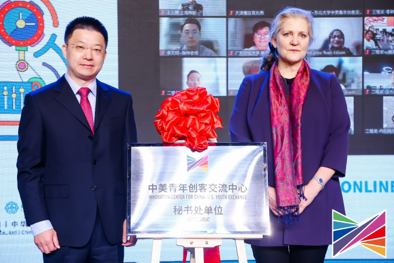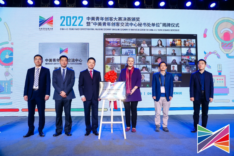 11月9日,2022中美青年创客大赛决赛颁奖暨“中美青年创客交流中心秘书处单位”揭牌仪式在北京中华世纪坛举行,活动现场举行了教育部中美青年创客交流中心秘书处单位揭牌仪式,教育部国际合作与交流司副司长陈大立和美国驻华大使馆公使衔参赞马文茵共同为温州大学授牌。