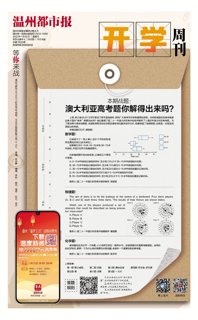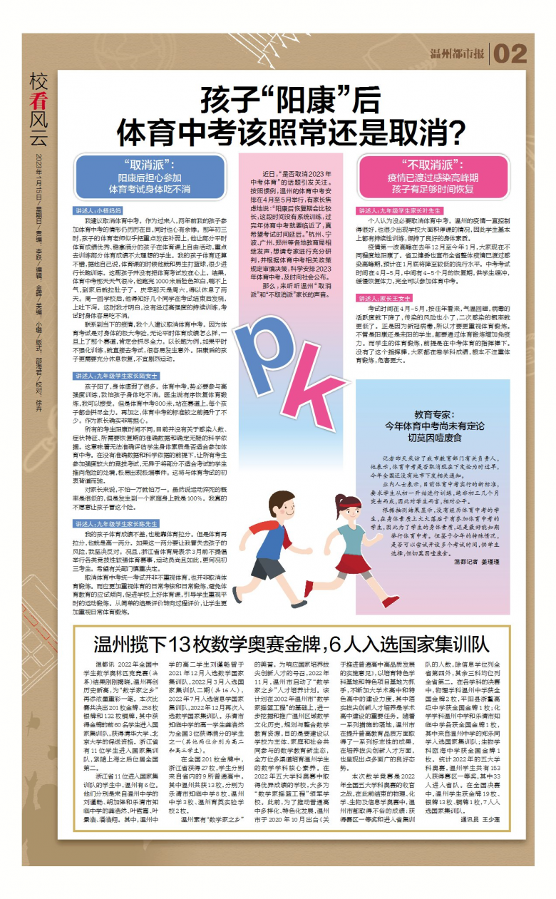 温州都市报《开学周刊》2023年1月15日报道版面图