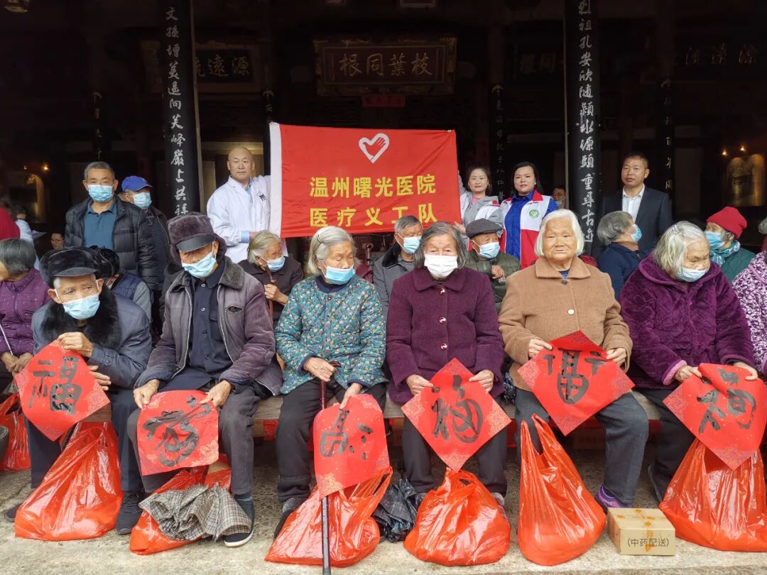 送医送药送春联送爱心包,为老人拍艺术肖像照……永嘉县岩头镇芙蓉村文化礼堂里,处处洋溢着温暖。1月13日,温州都市报陈忠慈善工作室联合温州医科大学药学院、阿尔伯塔学院、附属第一医院、附属眼视光医院,温州曙光医院,温州市摄影行业协会,温州楠溪第一楼餐饮等单位,开展肤生工程冬日暖阳送爱心公益慈善活动。