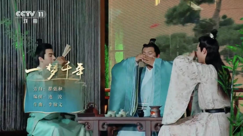 这是一台溯源“百戏之祖”的戏曲盛宴。“宋韵流千载,瓯风传一脉……”在温籍著名朗诵名家瞿弦和醇厚的旁白中,由温籍艺术家池浚编撰的戏剧情景演绎《千年一梦》,让文人雅士煮茶赏灯、题字吟咏的景象从史书中走出,再现了一部荡气回肠的戏曲变迁史。