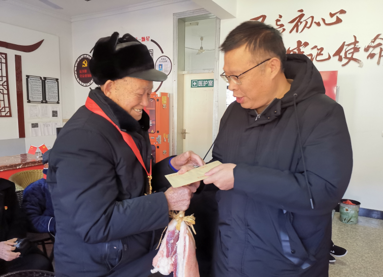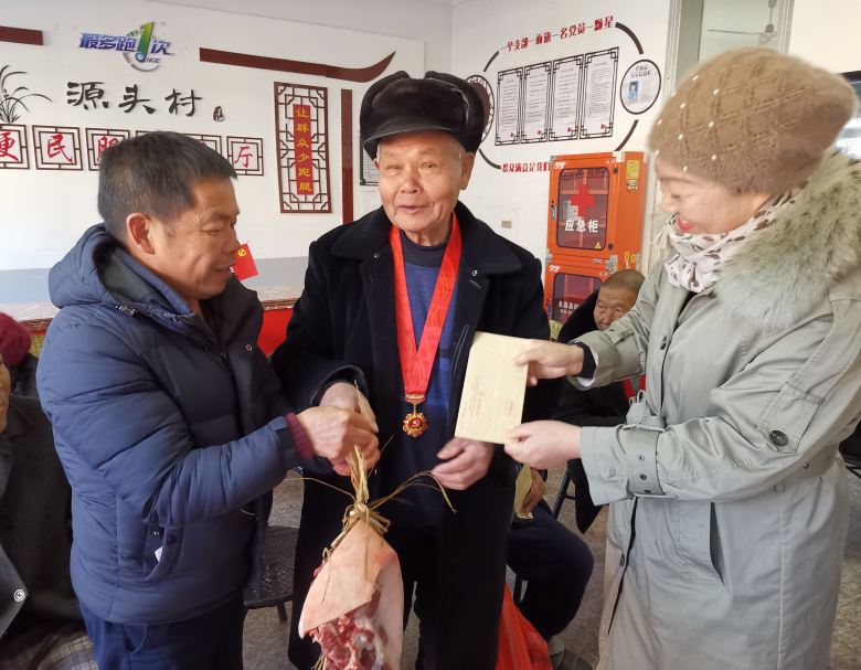 温都讯 1月28日,新春上班第一天,温州都市报陈忠慈善工作室“新春第一善”活动走进永嘉县岩坦镇源头村,给当地18户老党员和困难群众送上爱心包(一刀猪肉和红包),累计价值12600元,其中8位是光荣在党50年的老党员。